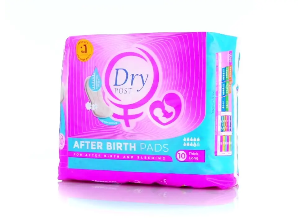 Absorbent postpartum diapers designed for mothers after childbirth. Provide secure leakage protection and comfort during recovery. Soft materials are gentle on sensitive skin. A 10-piece pack to support postnatal hygiene needs.