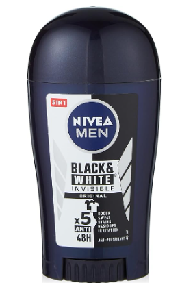 The NIVEA MEN Black & White Invisible Original Stick provides a high-performance solid antiperspirant barrier. It is designed for men who prefer the concentrated, dry application of a stick while demanding the same world-class clothing protection against white marks and yellow stains. – يوفر مزيل العرق نيفيا مين بلاك آند وايت إنفيزيبل أوريجينال ستيك حاجزًا صلبًا عالي الأداء مضادًا للتعرق. وهو مصمم للرجال الذين يفضلون الاستخدام المركز والجاف الذي يوفره مزيل العرق الصلب، مع الحفاظ على نفس مستوى الحماية العالمي للملابس ضد البقع البيضاء والصفراء.